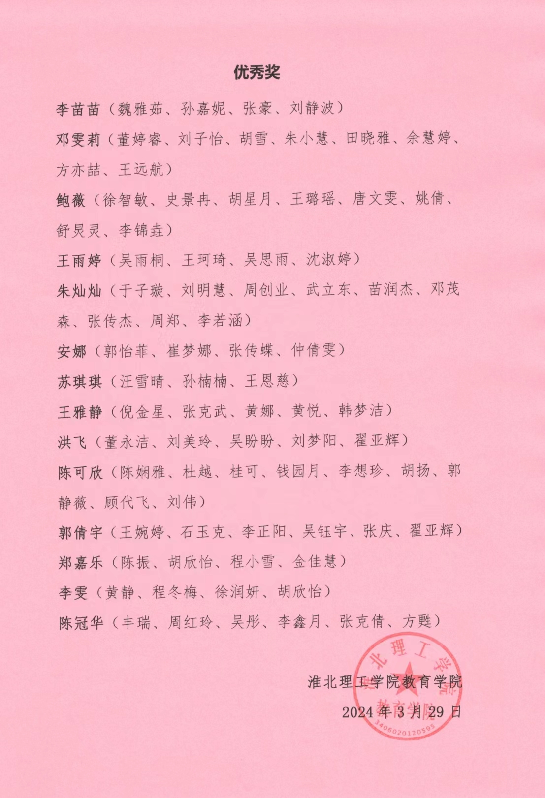 热烈祝贺我院程冬梅、臧宇祺、余乐、谢正宇、胡欣怡、代娇娇、李雯、黄静、徐润妍等275位同学获得奖项,具体获奖名单公示如下: