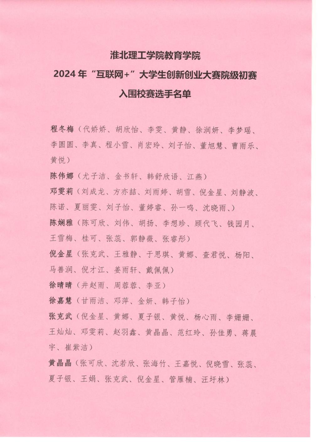 LETOU国际米兰官网2024年“互联网+”大学生创新创业大赛院级初赛入围校赛选手名单