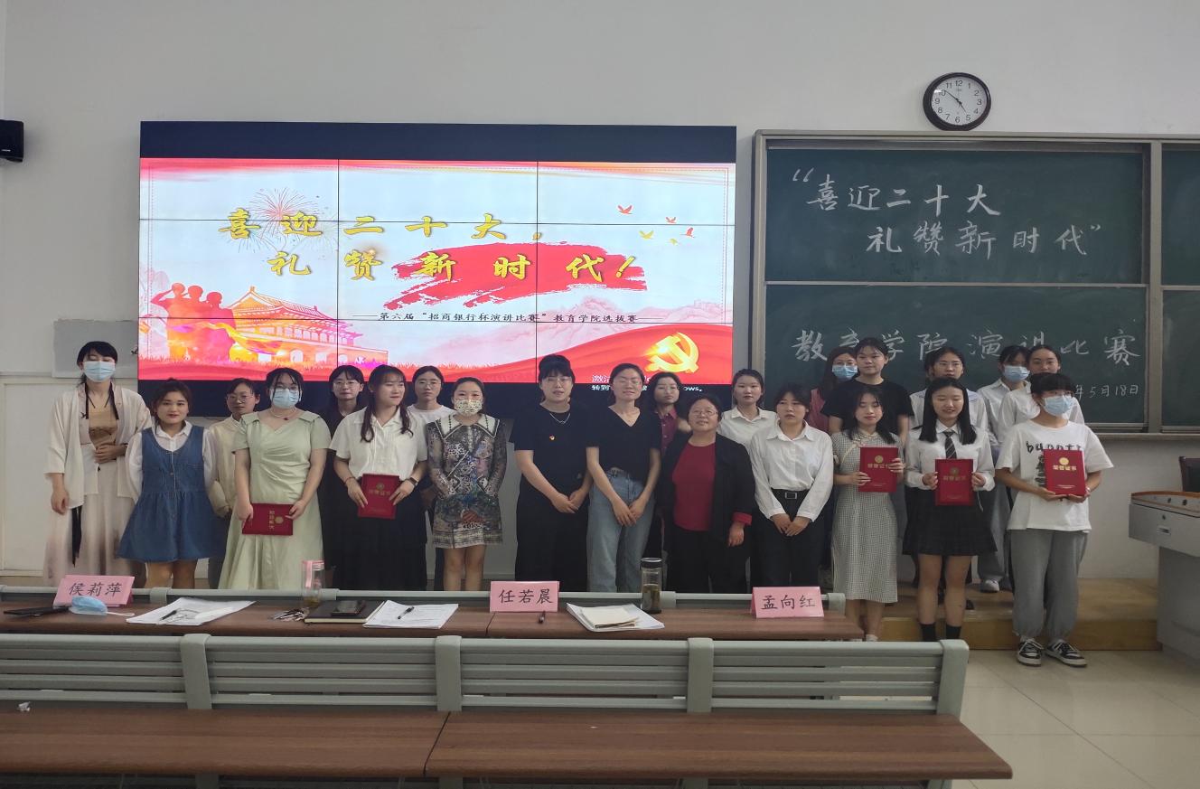 5月18日下午,学院在第一教学楼121室举办“喜迎二十大,礼赞新时代”主题演讲活动。参赛学生声情并茂地讲述百年党史,深入讲解习近平新时代中国特色社会主义思想,赞扬新时代国家取得的成就,歌颂新时代国家的英雄模范人物,展现了青年学子一心跟党走的伟大追求和报效国家人民的伟大情怀。