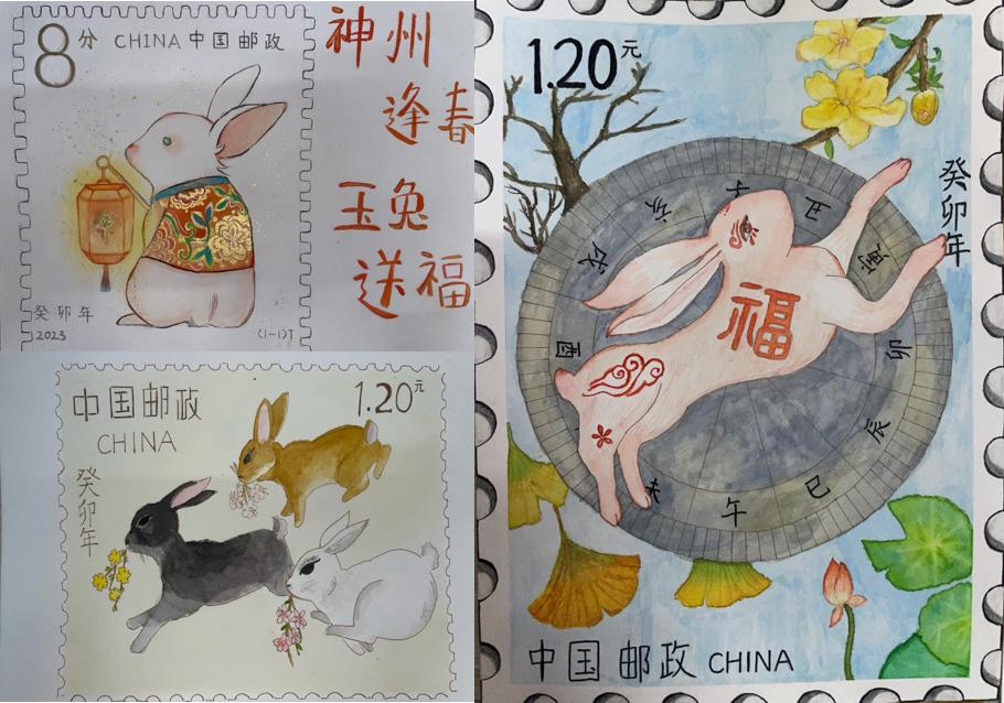 “神州逢春,玉兔送福”生肖邮票设计比赛,要求参赛者围绕2023年生肖(兔)创作,画面要求带有邮票元素。参赛者笔下的生肖(兔)创作各具时代特色,每一枚生肖邮票里都蕴含着各位同学的情感表达,具有特殊的收藏意义和收藏价值。参赛者通过参加此次活动,增加对于中国传统邮票的认识与理解。生肖形象最重要的象征意义,就是吉祥给个人和社会带来的美好。将我们对于美好新生活的期待与向往之情分享给每一个观看作品的人们。本次比赛共收取84份参赛作品。比赛评出一等奖2名、二等奖3名、三等奖5名。