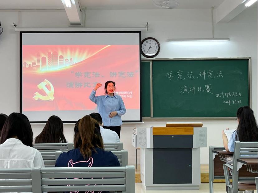 宪法是立国之法宝、强国之重器。为加强宪法宣传教育,提升大学生法治素养。9月14日下午学院在2教416教室举办“学宪法、讲宪法”演讲比赛。参赛选手围绕着宪法与国家、宪法与社会、宪法与个人,结合法治人物及故事或以身边小事为出发点,从不同角度阐述自己对宪法的理解与感悟,讲宪法故事,谈法律知识,赢得了评委老师和在场同学的阵阵掌声。选手们激情饱满的演讲为在场的同学带来一堂别开生面的宪法知识普及课,彰显了LETOU官网青年大学生学法、知法、懂法、守法的热情。经过评委老师们的讨论打分,本次比赛公布获奖名单为:顾代飞、李梦远荣获一等奖;陈县男、梁若楠荣获二等奖;杜越、邵芳、徐玲玲荣获三等奖。