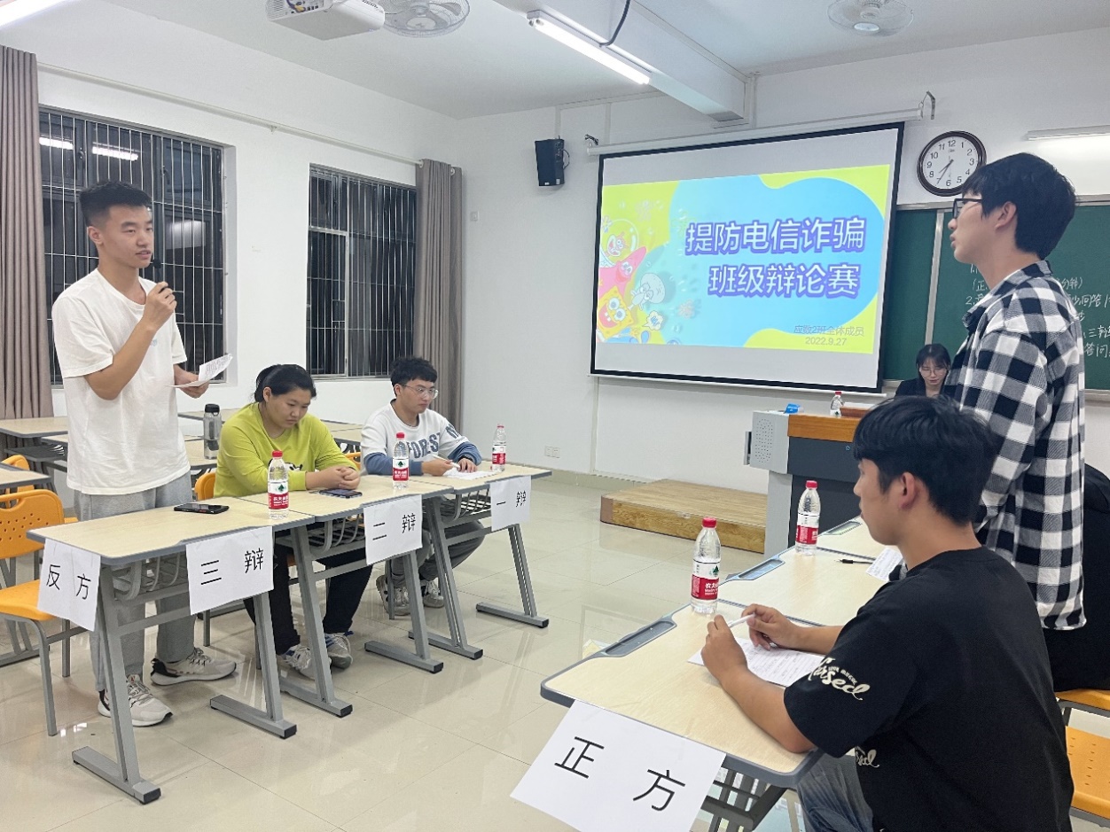 谨防电信网络诈骗,防范网络安全风险。为进一步贯彻落实区教育局《关于在全市开展防范宣传教育活动的通知》精神,切实提高大学生对诈骗的识别能力,保护广大师生利益和人身安全。LETOU国际米兰官网于9月下旬组织各班级开展辩题为“预防诈骗和打击诈骗哪个更重要”的防诈反诈辩论赛。