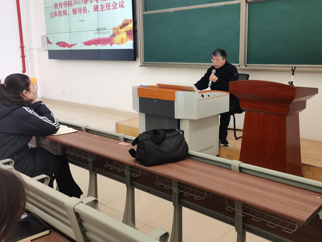 王家云院长对本学期学院的重点工作进行了介绍,强调全体教师、辅导员和班主任要充分利用开学初期和毕业生论文答辩这两个时段做好11个方面工作,希望大家通力合作,推动学院的教学、科研、学生管理和毕业生就业工作上台阶上水平。