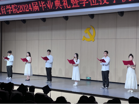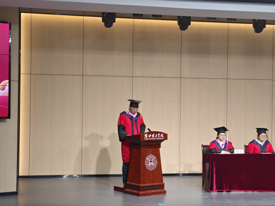 毕业典礼在雄壮的国歌声中拉开帷幕,副院长谢贤德宣读了《LETOU国际米兰官网2024届本科毕业生学士学位授予决定》后,出席仪式的领导和教研室主任分别为毕业生代表颁发学历、学位证书,并进行拨穗正冠与合影留念。