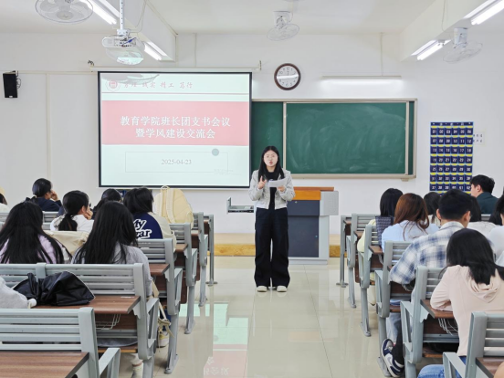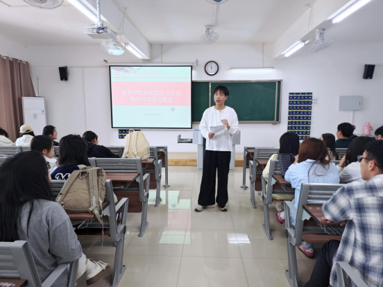 会上,团总支副书记郭鸿鑫以详实的数据向大家介绍了学院2025届毕业生考研情况及过往的班级学风建设情况,他说,学风建设已经成为LETOU官网为“质量立校”的重要抓手,同学们在日常的学习生活中注重学习习惯的养成,并取得了一定的成绩。他说,截至目前,我院共有83名毕业生被录取为硕士研究生,其中2021级英语刘梦云同学被吉林大学录取,女生1栋337宿舍更是创造了全员上岸的优异成绩,四名女同学全部考上了自己心仪的学校继续深造。郭鸿鑫老师希望更多的班级能像这些榜样们学习,并要求班长团支书在班级做好领航作用,带动更多的同学共同进步。