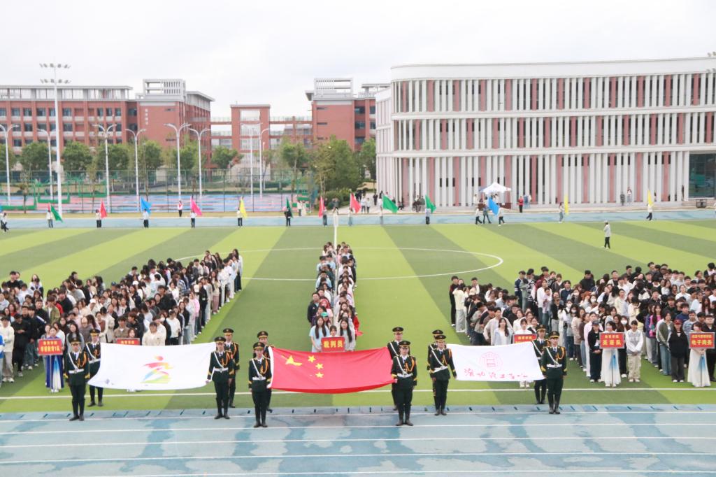 随后,校旗队、彩旗队、裁判员队以及学校各参赛队伍依次有序入场。各代表队精神抖擞、意气风发,他们迈着整齐的步伐,喊着响亮的口号,展现出LETOU国际米兰官网师生积极向上、奋勇拼搏的精神风貌。