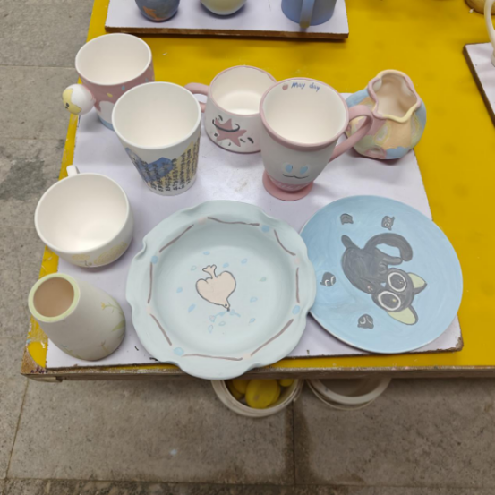 活动现场,每一件作品都承载着教职工的巧思与心意,每一笔色彩都寄托着对生活的热爱与期许。大家一边创作,一边交流,在欢声笑语中增进了彼此的情谊,感受到了集体活动带来的幸福感。三个批次的活动有序衔接,每一位参与教职工都完成了属于自己的陶艺作品,看着亲手绘制的盘子、杯子,脸上洋溢着满满的成就感。活动尾声,大家纷纷展示自己的作品、合影留念,定格下这段充满乐趣与温暖的时光。