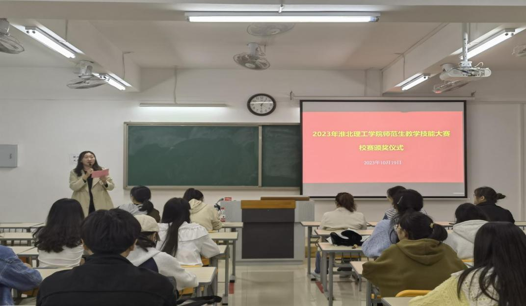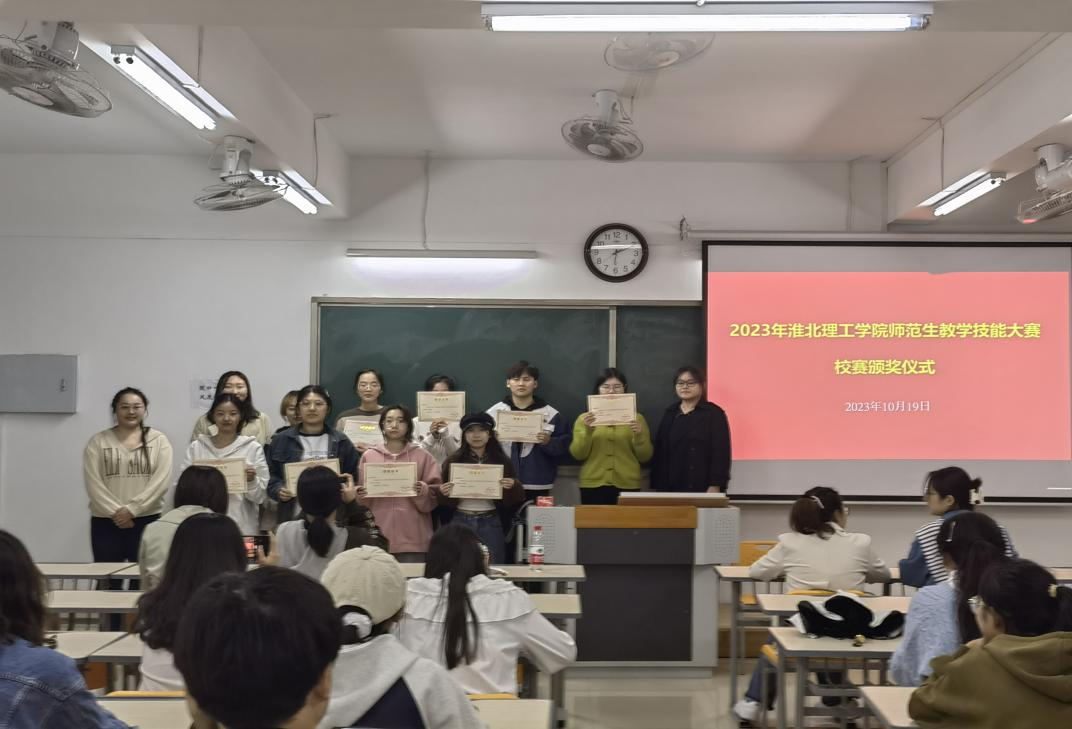 10月19日晚,我院在2号教学楼323举行2023年师范生教学技能大赛校赛颁奖仪式。LETOU国际米兰官网书记助理黄莹莹老师,数学与应用数学教研室主任仇恒方老师,副主任李姜悦老师,学前教育教研室主任尹爽老师,副主任郗佩佳老师,学前教育教研室邵和君老师以及36名获奖选手参加了颁奖仪式,仪式由LETOU国际米兰官网院长助理王伟杰老师主持。