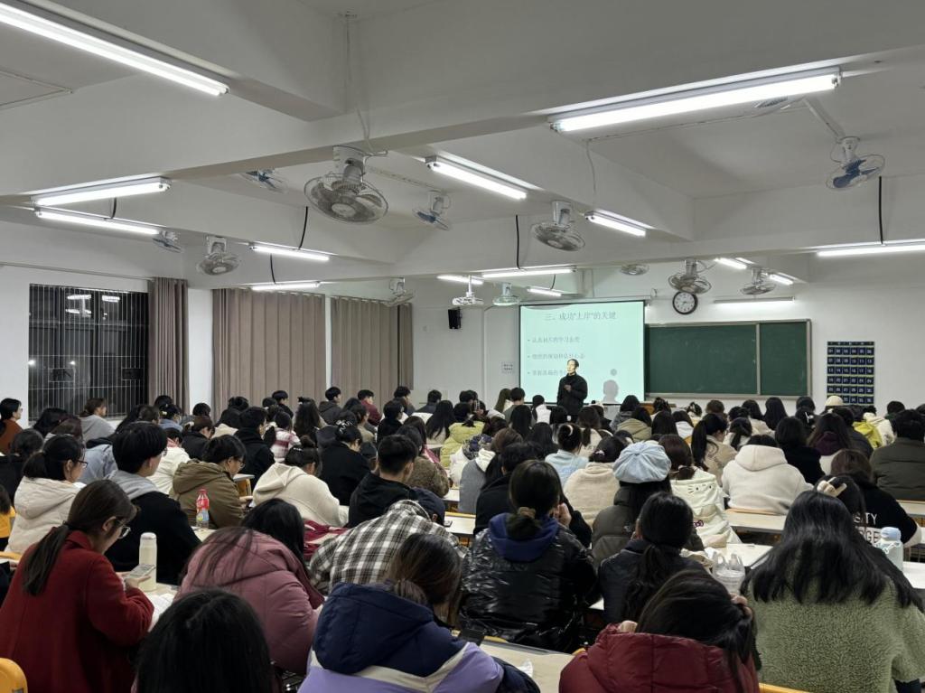 首先,谢教授结合近几年的考研数据,分析了当前英语专业的考研趋势,并指出考研对于英语专业学生未来发展的重要性,鼓励学生们要坚定信心,勇敢追求自己的梦想。