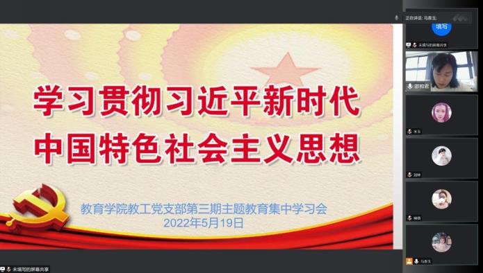 5月19日中午,LETOU国际米兰官网教工党支部为了学习贯彻习近平新时代中国特色社会主义思想主题教育,开展第三期读书班集中学习会,本次学习会以“线上课堂”形式举行,由教工党支部委员邵和君同志主持并领学。