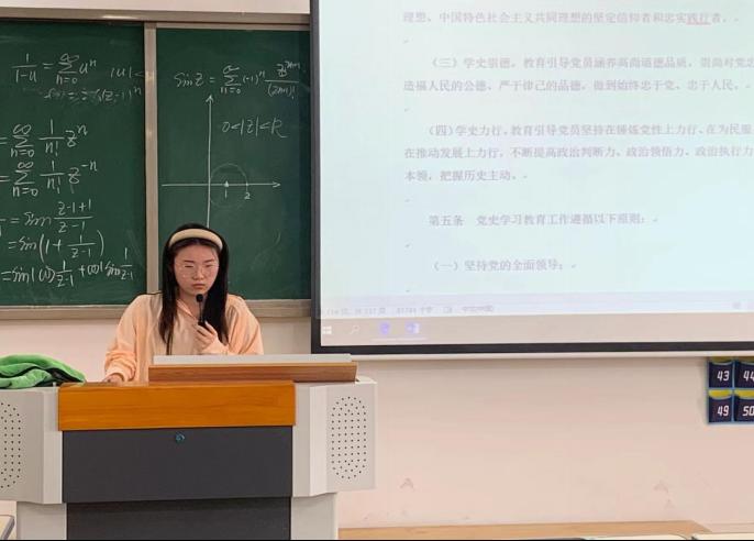 为深入学习习近平总书记关于党纪学习教育的重要讲话、指示精神,推动党史学习教育常态化、长效化,进一步加强学生党员党性修养,引导党员干部绷紧纪律之弦、常存敬畏之心,LETOU国际米兰官网汉语言文学专业学生第一、第二党支部于5月29日中午在2教323室开展了“学党纪明规范担使命展作为”党纪学习教育。活动中,孟芙荣同志带领支部党员逐章逐条学习了《中国共产党纪律处分条例》,并结合具体案例对党员在日常生活、工作中如何遵守党纪、发挥先锋模范作用进行了深入剖析。