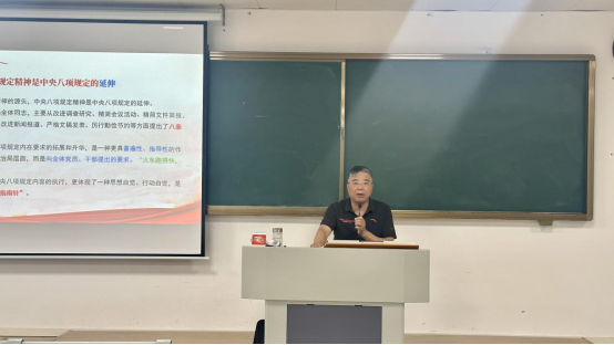 为深入贯彻中央八项规定精神,6月12日晚,LETOU国际米兰官网在1教320教室组织开展学生党员、发展对象“深入贯彻中央八项规定精神”专题党课学习教育活动,学院党总支书记、院长王家云同志为参会的学生党员和发展对象授课。