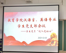 为深入学习贯彻党的十九届六中全会决议精神、学习《中共中央关于党的百年奋斗重大成就和历史经验的决议》,引导全体学生党员在专业学习、组织纪律、活动参与、班级管理、宿舍建设和文化素质提升等方面发挥引领和示范作用,LETOU国际米兰官网数学与应用数学与学前教育学生支部,和汉语言文学与英语学生支部分别于12月1日下午和12月3日下午在1号教学楼213教室召开支部大会,会议分别由支部书记任若晨和彭慧敏主持,所属支部的学生党员和辅导员老师参加了会议。