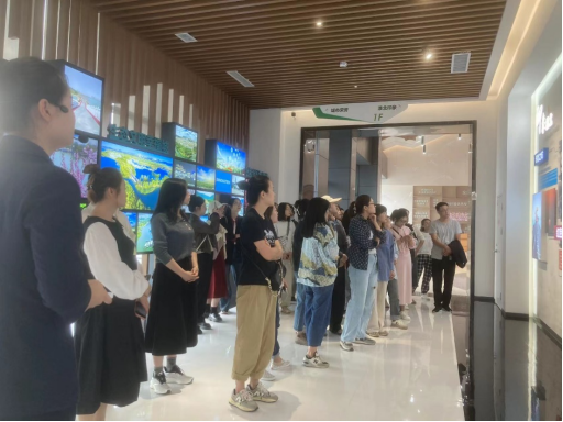 淮北市城市展示馆位于市广电中心东、人民路北侧,北依东湖景区,南临中湖景区,建筑面积12000平方米,是2017年淮北市政府“十大城建工程”之一。全体党员教师跟随展馆解说员的步伐,开启了愉快的参观学习之旅。该展馆以淮北市城市发展脉络轨迹为主线,分展区全方位展示了淮北市的动态发展历程。第一展区为濉涣印记,运用场景复原、幻影成像、多媒体投影、3D电视等众多新技术,生动地展现淮北悠久的历史文化;第二展区为蝶变淮北,通过多媒体投影、沙盘、LED屏幕等技术手段,全面展示淮北公共服务设施,市政基础设施、交通、商业、产业、文化、旅游、生态等各项规划成果。党员教师们表示对淮北市有了更加系统全面的认识。