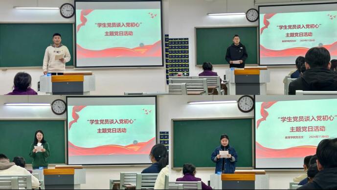 为深入学习贯彻党的二十大精神,引导学生党员在新的学习生活环境中,保持共产党员的先进性,在专业学习、组织纪律、文化素质提升等方面发挥引领和示范作用,自觉做习近平新时代中国特色社会主义思想坚定信仰者和忠实实践者,LETOU国际米兰官网党总支于2024年11月6日在1教213教室,举行“2024级学生党员谈入党初心”主题党日活动。活动由陈慧慧同志主持,学院党总支副书记孟向红、各学生党支部书记及27名新生班级学生党员参加了活动。