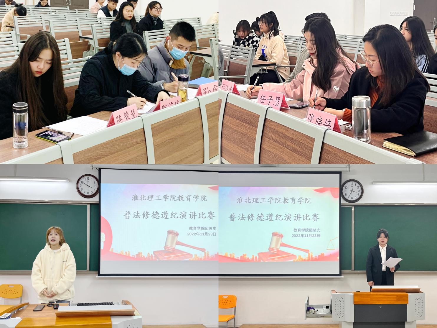为促进同学之间互相理解,增进活动效果,各班级组织开展普法讨论活动。同学们积极参与,学习相关的法律条例、视频等,各抒己见,谈收获、谈体会。并纷纷感叹,要凝聚青年力量,学习法治思想,诠释社会主义法治精神。