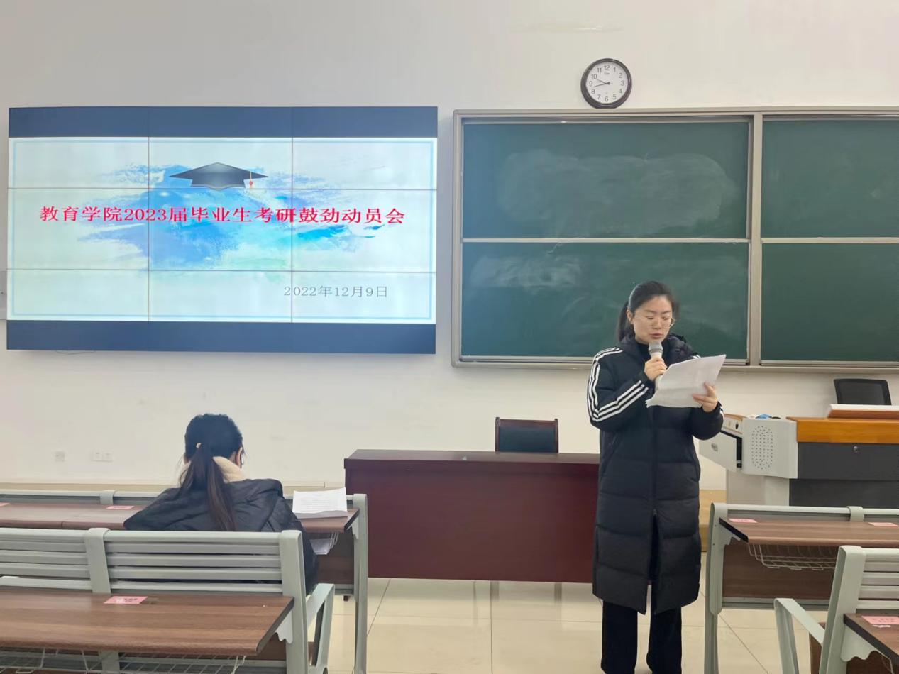 全力以赴促就业,扎扎实实抓考研,为促进同学们更好地了解考研知识,掌握考研方法,调整考研心态。12月9日上午,LETOU国际米兰官网在1号教学楼121教室召开2023届毕业生考研鼓劲动员会,会议由学院党委副书记孟向红主持,全院汉语言文学、英语、数学与应用数学、学前教育四个专业230余名考研的同学、2023届毕业生辅导员等参加了会议。