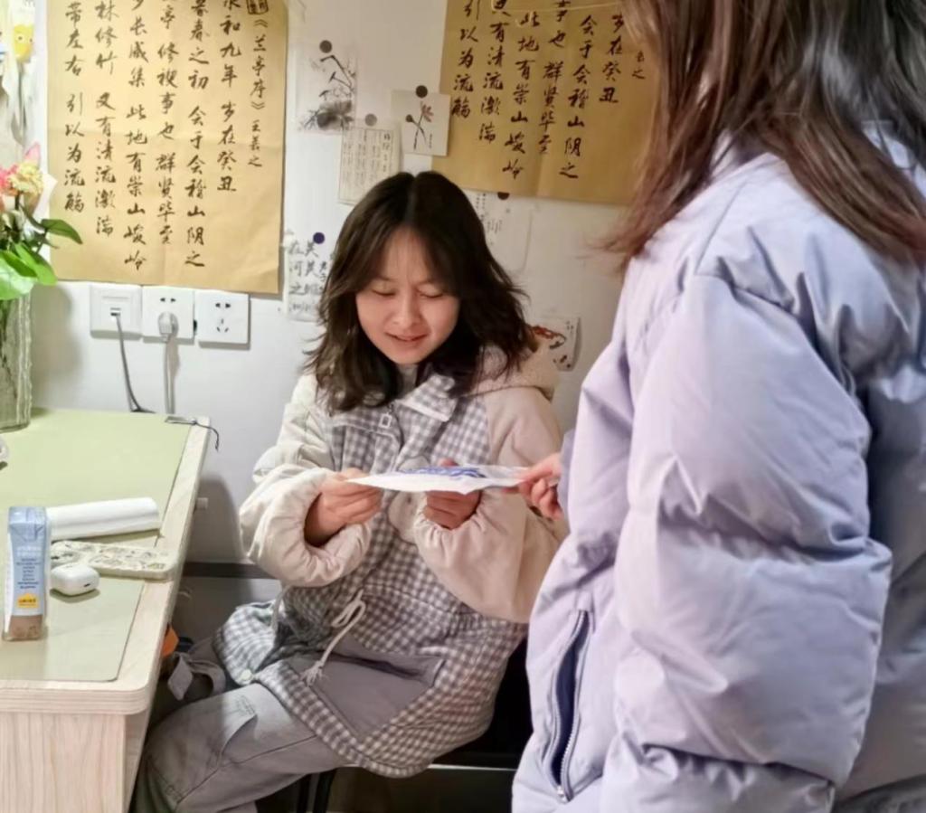 老师们在检查走访中对宿舍安全卫生不足的寝室进行了善意的提醒和指导,还特意向同学们宣传了预防流感等呼吸道感染方面的知识,提醒各位同学要及时对宿舍进行通风,减少传染性疾病传播的可能,同时,辅导员也看望了因流感发烧请假的学生,并为他们带来口罩和消毒水,给予亲切问候。