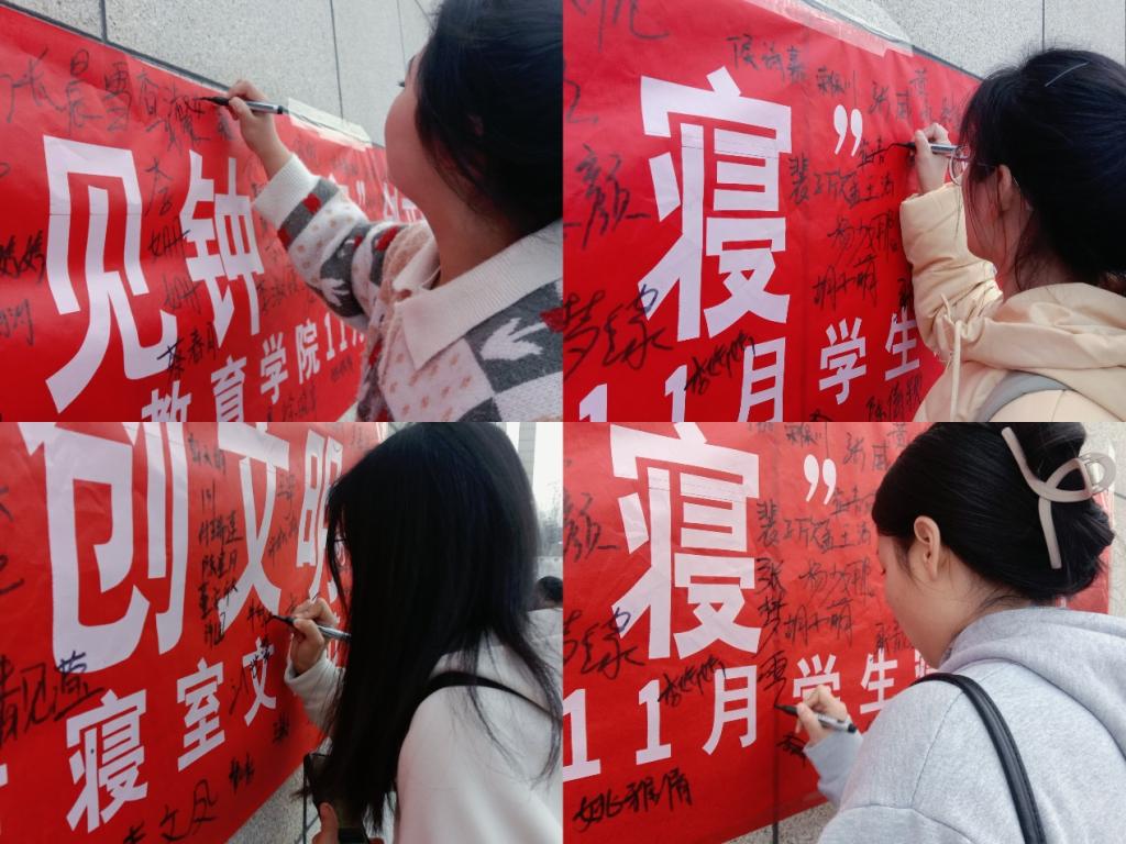 为了进一步推进学生宿舍文明建设,营造温馨舒适的宿舍环境,特此LETOU国际米兰官网举办以“寓建和谐共奋斗,一见钟‘寝’创文明”为主题的宿舍文化节横幅签宇活动。本次活动共有200名同学参加,活动现场气氛活跃,众多学生在宣传展板上签上自己的姓名。本次活动中体现出了同学们对于倡导校园文明和创建和谐宿舍的热情和信心。
