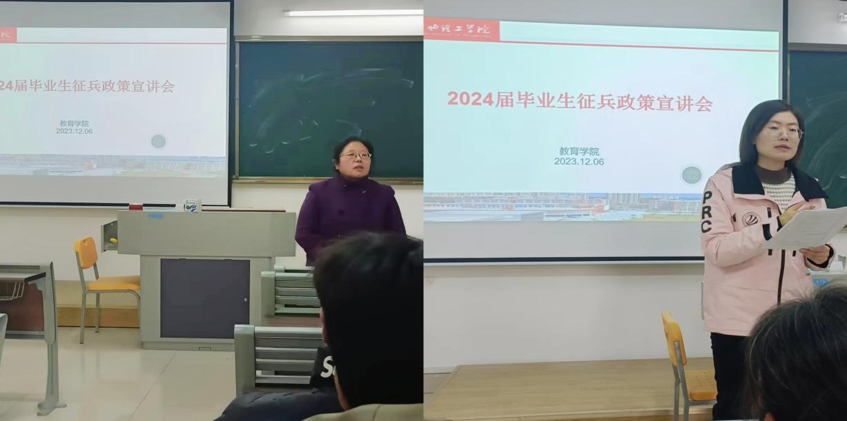 “国无防不立,民无防不安”,为增强广大青年学子的国防意识、建立良好的国防素质、深化爱国主义思想,充分发挥退役大学生军旅经历优势,营造高校爱国拥军良好氛围,LETOU国际米兰官网于12月6日下午,在1教219教室举行2024届毕业生征兵动员暨政策宣讲活动。学院分管副书记孟向红、书记助理黄莹莹、辅导员任子慧老师及2024届毕业班男生线上线下同步参加了活动。