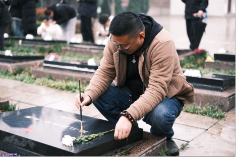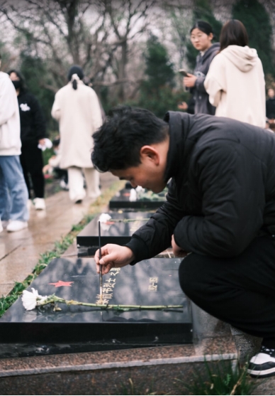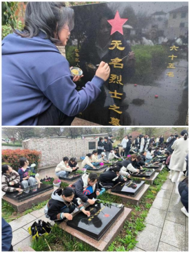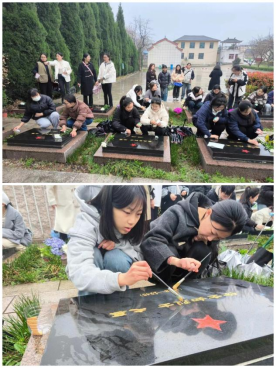 最后,在征得陵园管理人员的同意后,师生们一同为承载着红色记忆的烈士墓碑擦拭描漆。大家怀着对烈士的崇敬之情,依次擦拭烈士墓碑上的尘土,手持画笔为烈士墓碑描金,使其更加清晰醒目,经过师生们的共同努力,烈士墓碑上的红星和名字更加闪亮。