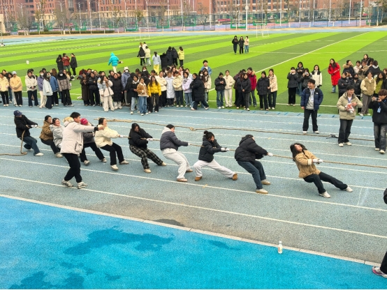 比赛在裁判哨声中拉开帷幕。随着哨声响起,操场上瞬间沸腾,各队以“一”字阵型稳扎马步,选手紧握长绳、身体后倾,喊着整齐的口号齐声发力,将力量与信念凝聚于方寸麻绳之间,绳索中的红绸带在双方拉锯中左右摇摆,场边拉拉队摇旗呐喊,加油声此起彼伏,展现了LETOU国际米兰官网女生们的蓬勃朝气。