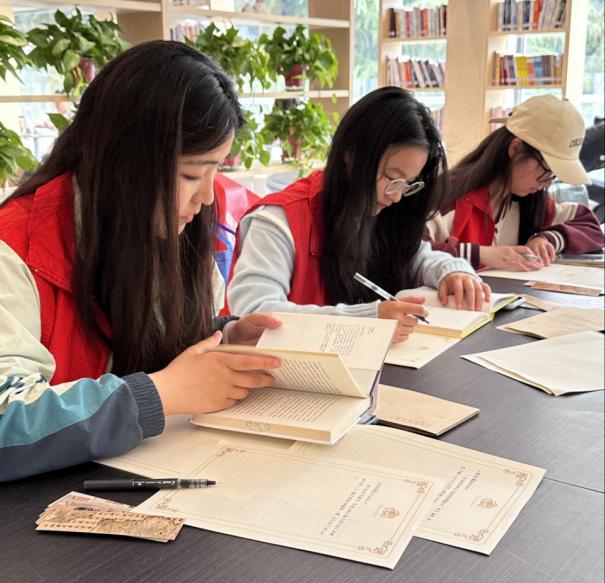 在书院的阅览区,同学们开启了一小时的集中阅读。大家从书院推荐的经典书目中选取读物,静心品读。随后,参与者以传统书信形式在特制信笺上写下读书感悟,既有对古典文学教育思想的现代解读,也有结合《平凡的世界》探讨青年成长的思考。这些手写信件将被分享给身边的同学们,成为校园之间的“读者对话。