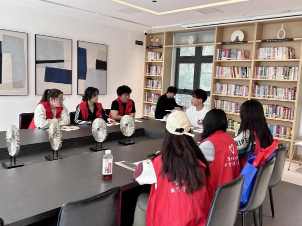 志愿者们来到书院,受到了书院工作人员的衷心欢迎。随后,书院讲解员带领师生参观书院建筑,详细介绍了相山书院的建造历程。作为当地重要的文化传播点,书房整体建筑面积约1400平方米,藏书量40000册。随后由辅导员郭鸿鑫老师为各位同学讲解此次活动的具体要求,并要求同学们要身体力行,将读书热情与志愿服务相结合。